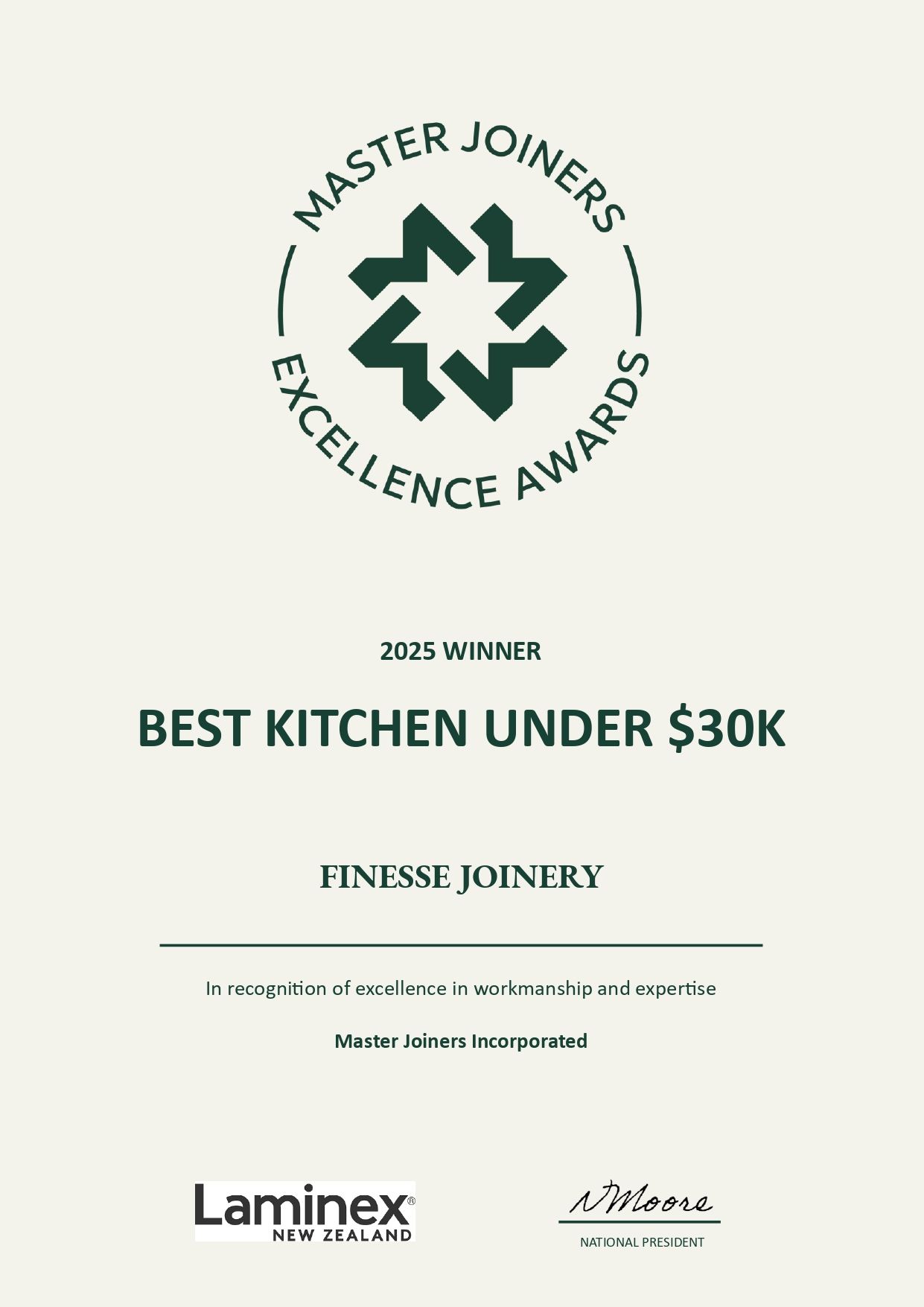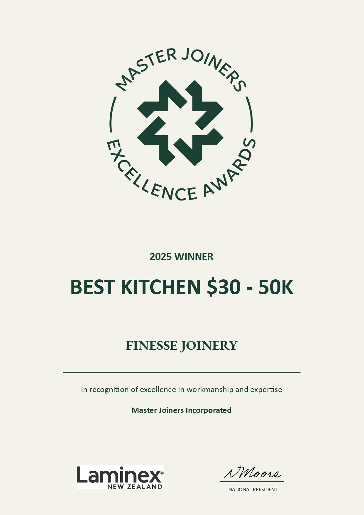 The Master Joiners Excellence Awards are New Zealand’s most prestigious recognition for joinery and cabinetry. Judged by industry experts, the awards highlight innovation, craftsmanship, and design excellence.