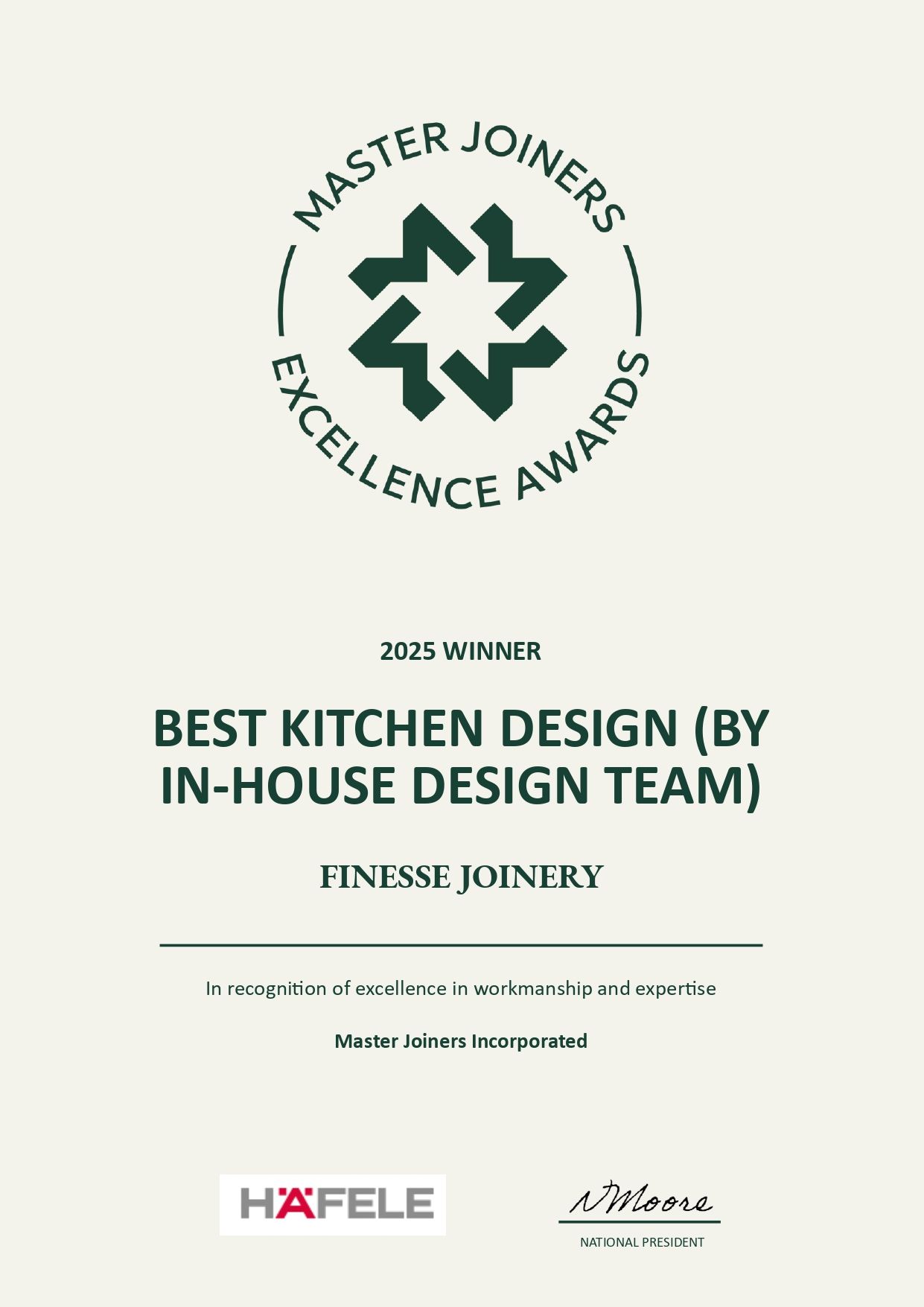 When it comes to kitchens, great design is about more than looks. It’s about creating a space that works for the people who use it every day — balancing practicality, durability, and style. At Finesse Joinery, we’re proud to say that this philosophy has once again been recognised on the national stage, with multiple wins at the 2025 Master Joiners Excellence Awards.