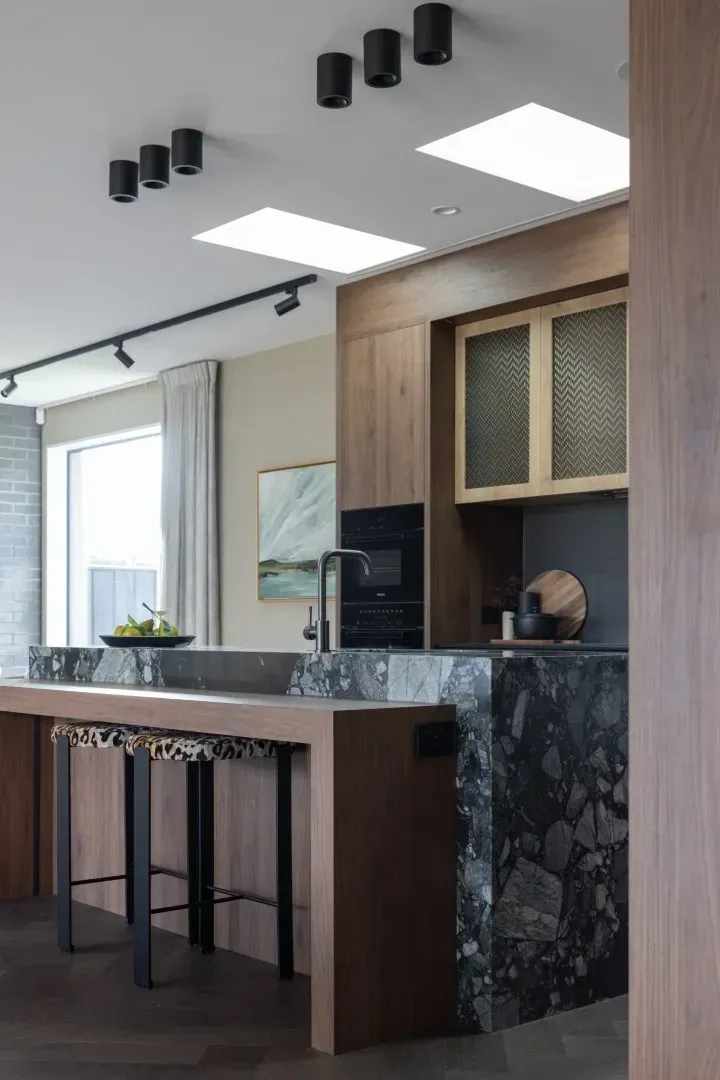 This stunning kitchen, crafted by Finesse Joinery for Hallmark Homes, showcases a seamless collaboration with Sandalwood Design. The elegant design was beautifully captured by photographer Anna McLeod, highlighting its modern functionality and timeless appeal. Every detail, from the bespoke cabinetry to the thoughtful layout, reflects the dedication to quality and creativity that defines Finesse Joinery's work. A perfect example of how expert craftsmanship and innovative design come together to create spaces that inspire.